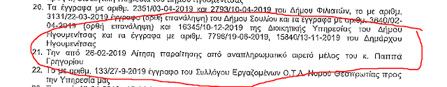 · Αναφερθήκαμε για στην απαράδεκτη στάση της διοίκησης του Δήμου Φιλιατών που ενώ έχει τόσα θέματα εργαζομένων που εκκρεμούν, δεν έστειλε ούτε ένα στην συνεδρίαση στις 19-5-2020.