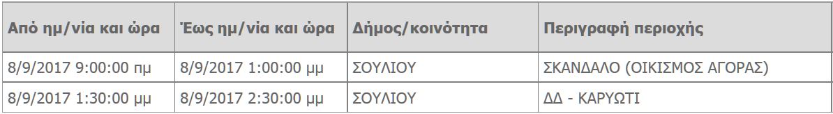 Δειτε που θα σημειωθεί διακοπή ρεύματος αύριο
