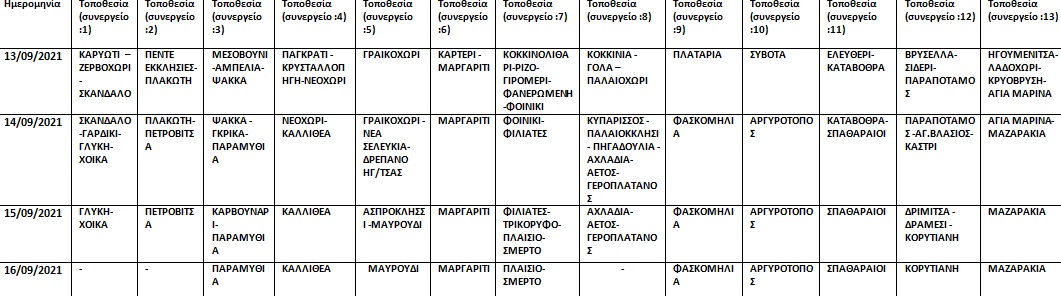 Στα πλαίσια του προγράμματος συλλογικής καταπολέμησης του δάκου της ελιάς έτους 2021, για την περιφερειακή ενότητα Θεσπρωτίας, θα πραγματοποιηθεί ψεκασμός των ελαιόδεντρων σύμφωνα με το ακόλουθο πρόγραμμα: