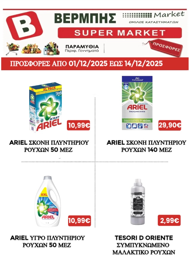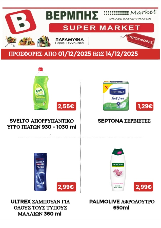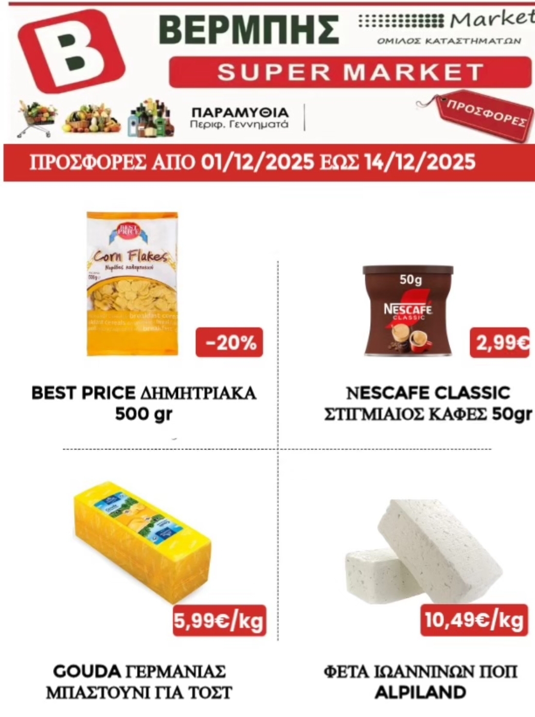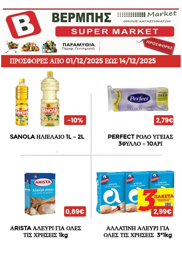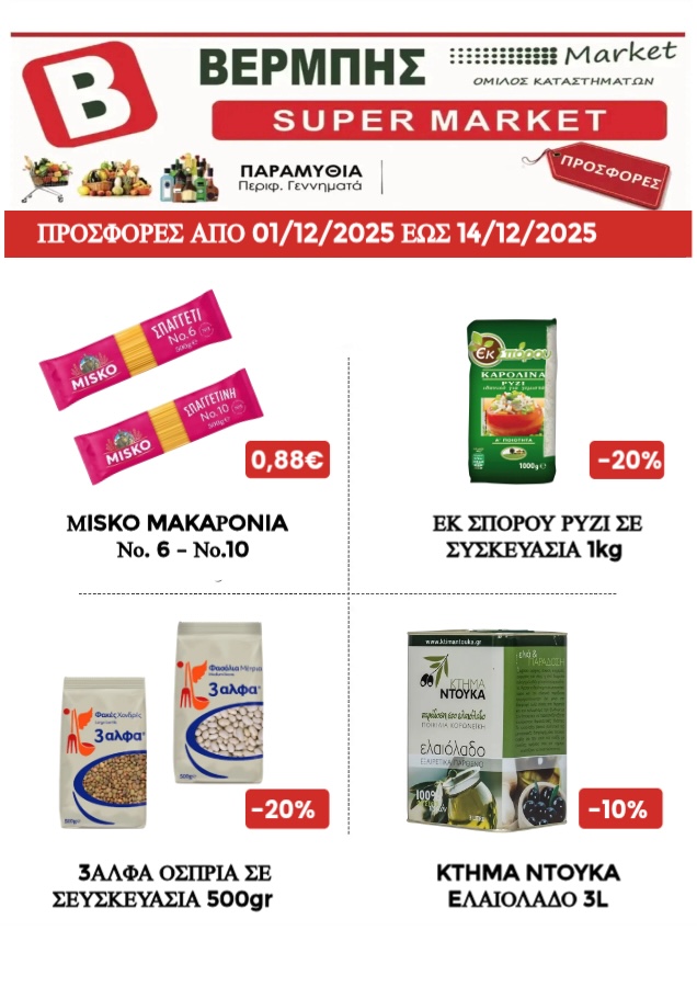 Δείτε το Φυλλάδιο Προσφορών από τα Super Market “ΒΕΡΜΠΗΣ” Περιφερειακός Γεννηματά - Παραμυθιά 03|11|2025