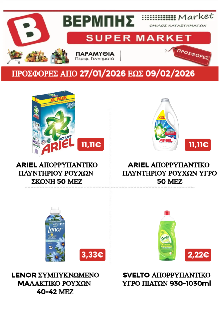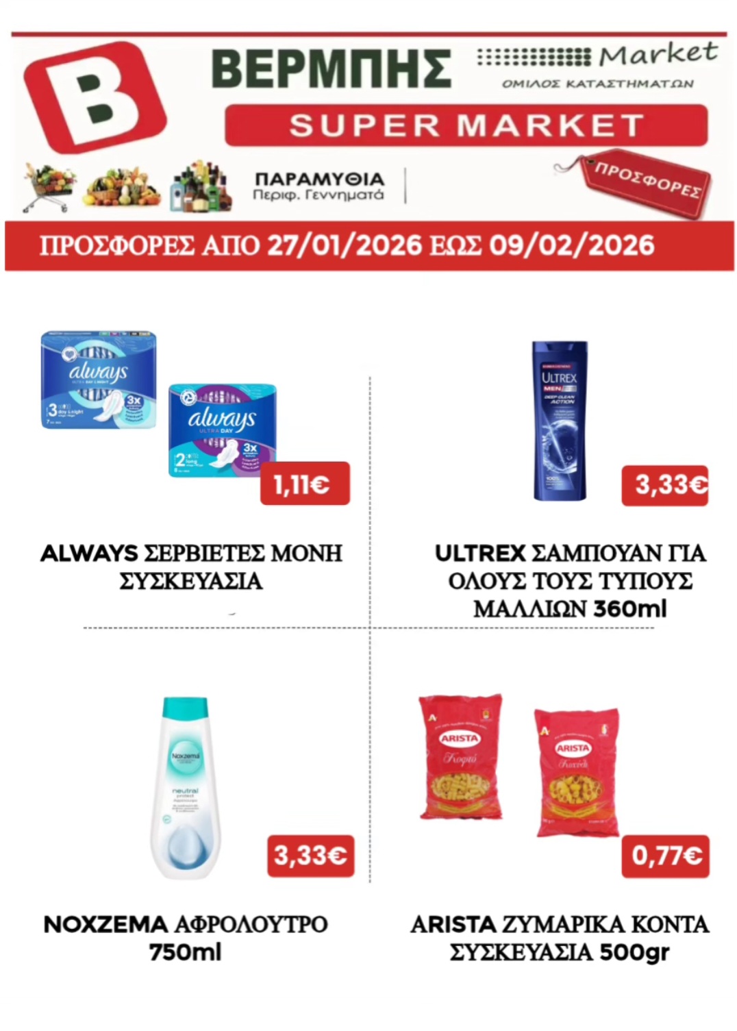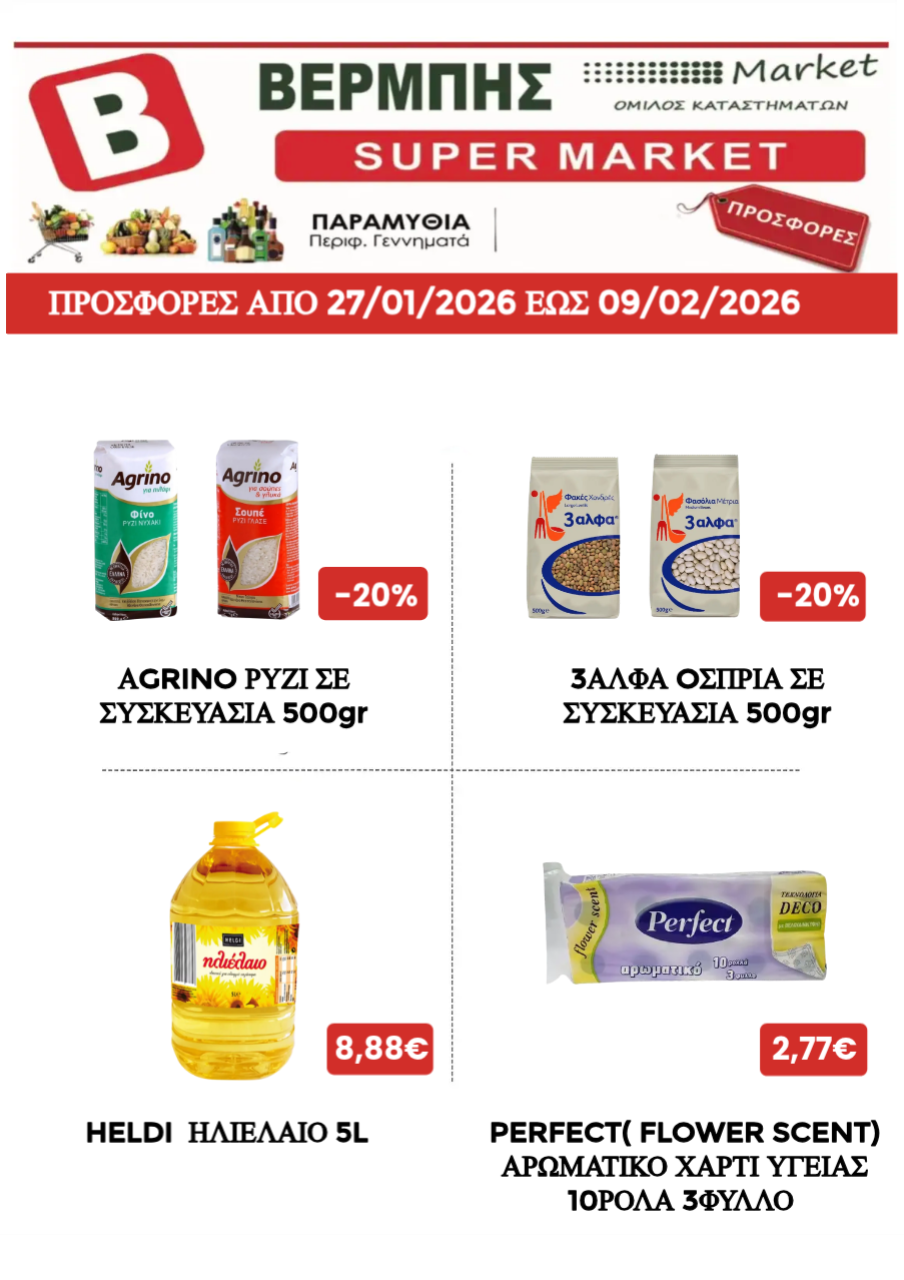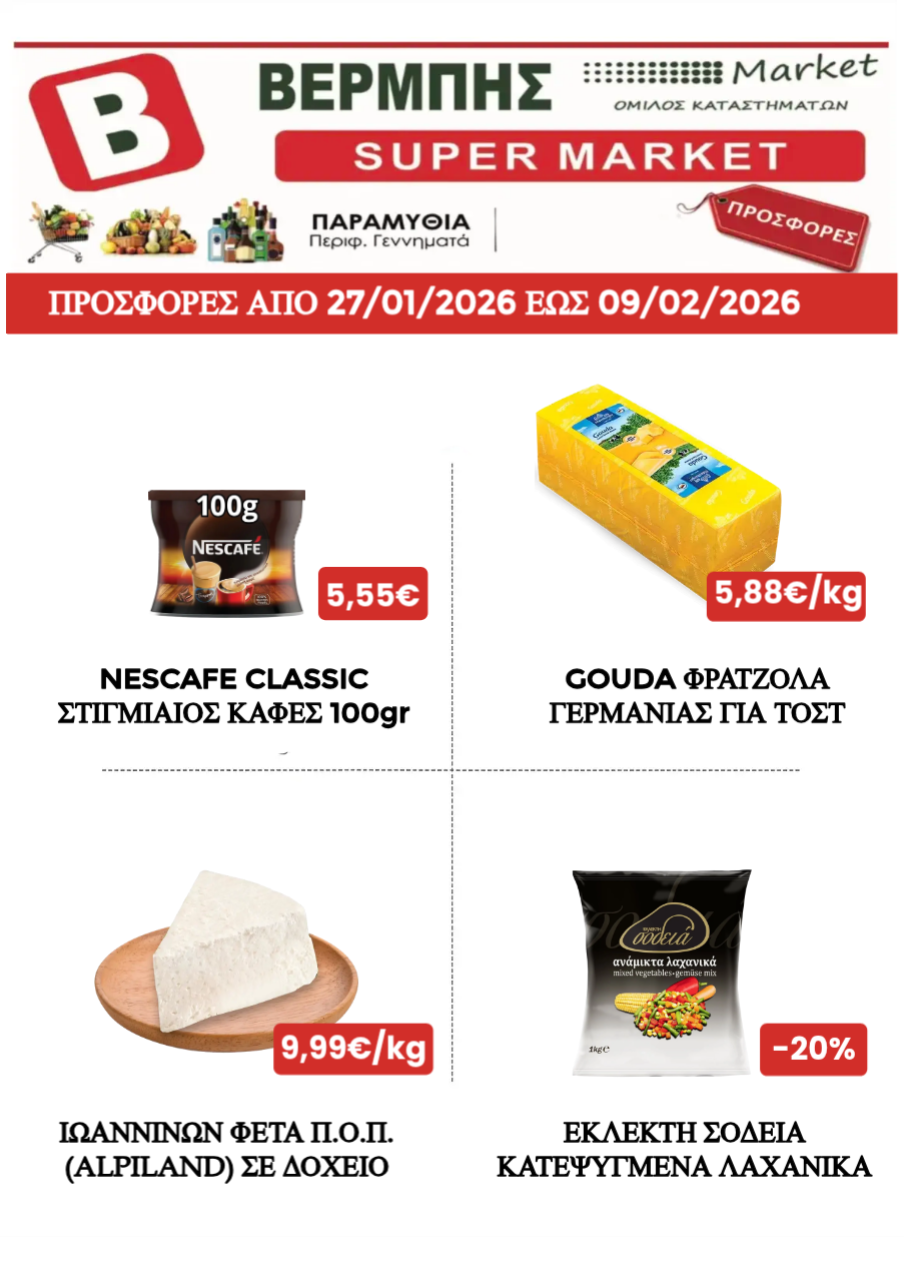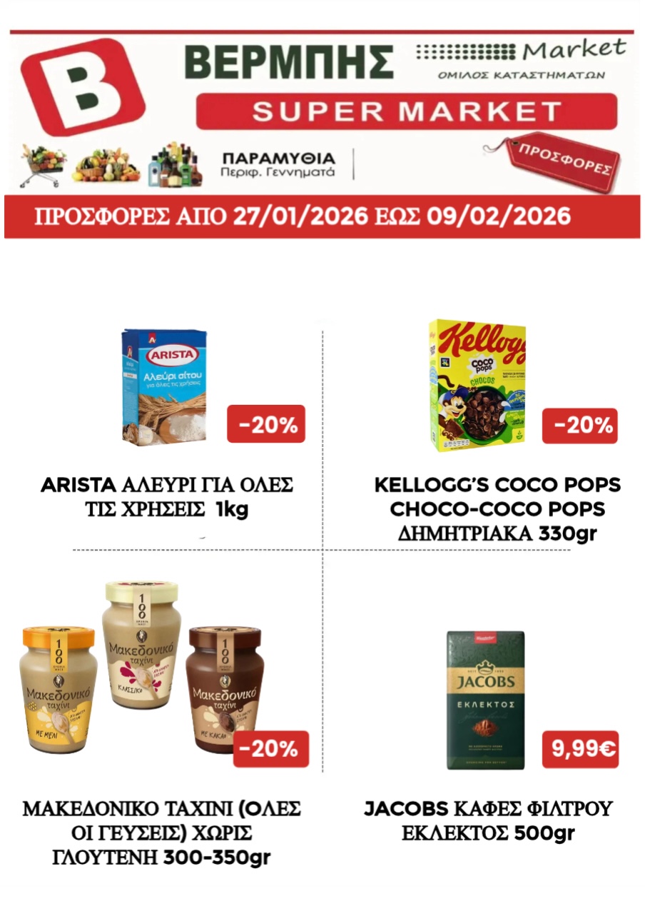 Δείτε το Φυλλάδιο Προσφορών από τα Super Market “ΒΕΡΜΠΗΣ” Περιφερειακός Γεννηματά - Παραμυθιά 26|01|2026