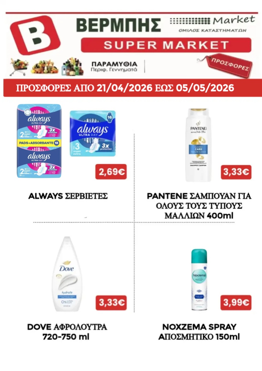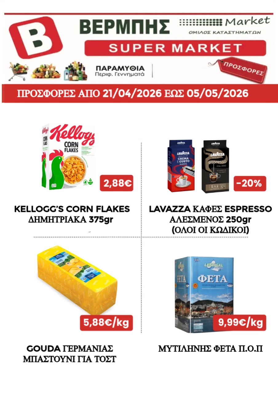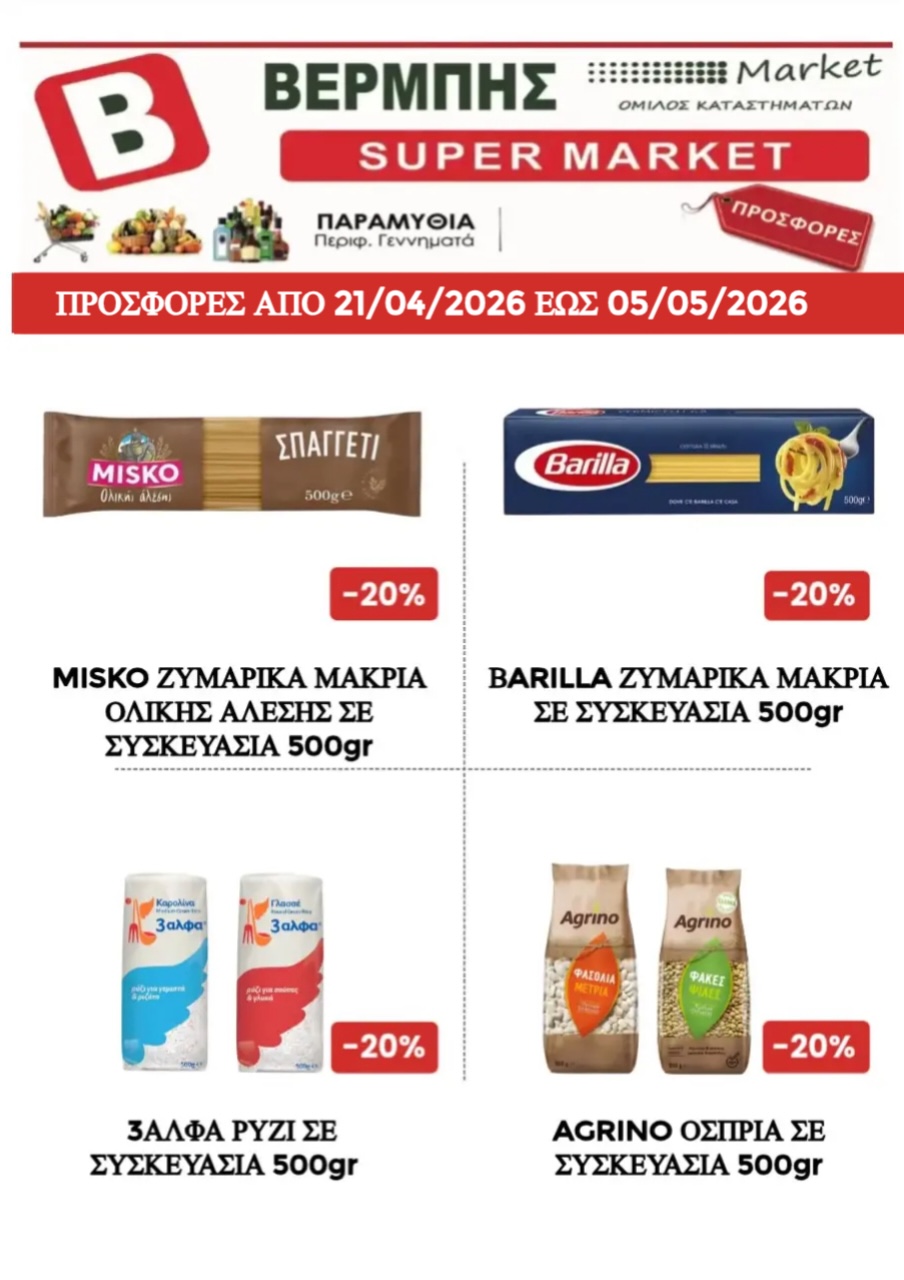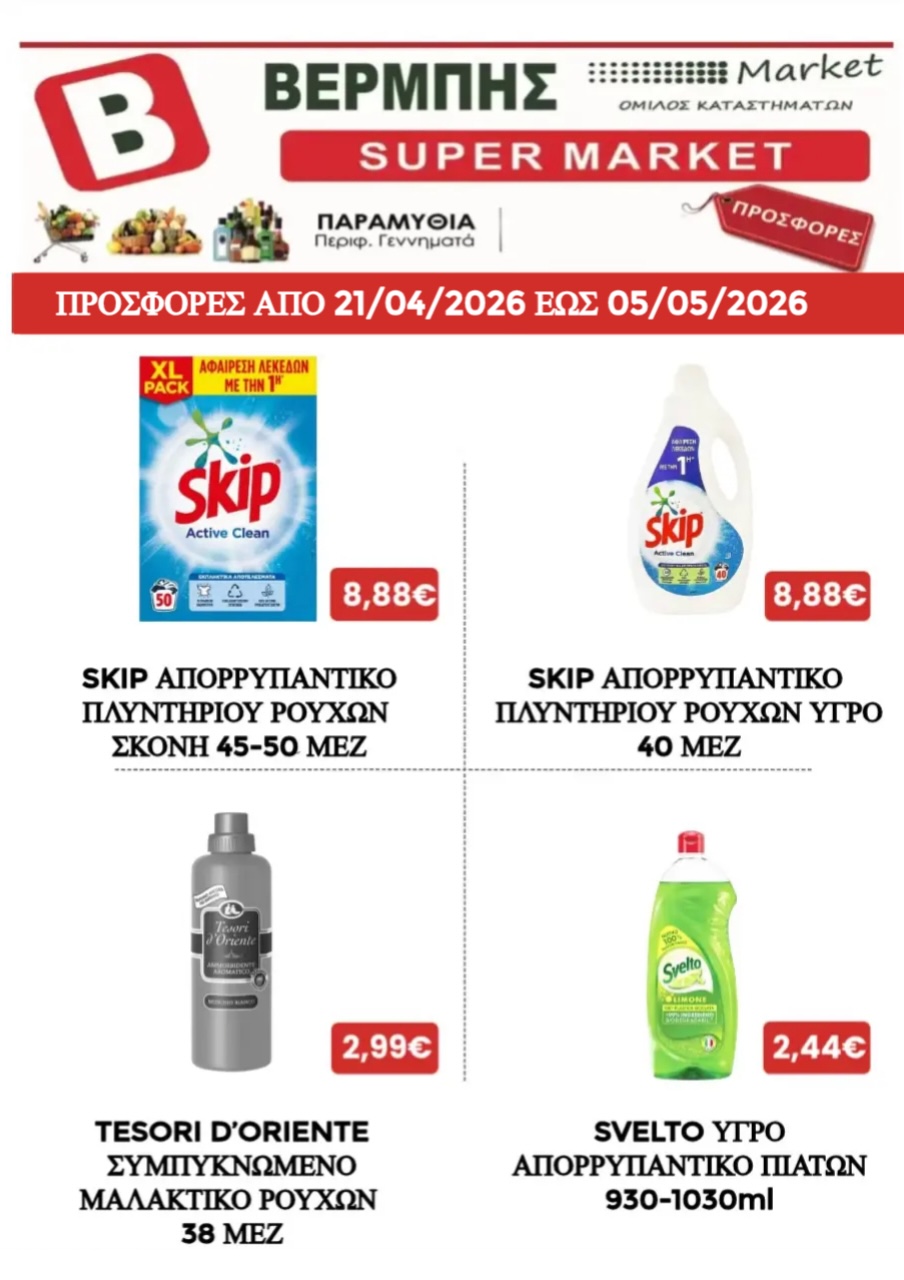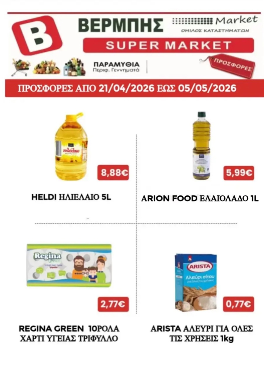 Δείτε το Φυλλάδιο Προσφορών από τα Super Market “ΒΕΡΜΠΗΣ” Περιφερειακός Γεννηματά - Παραμυθιά 27|04|2026