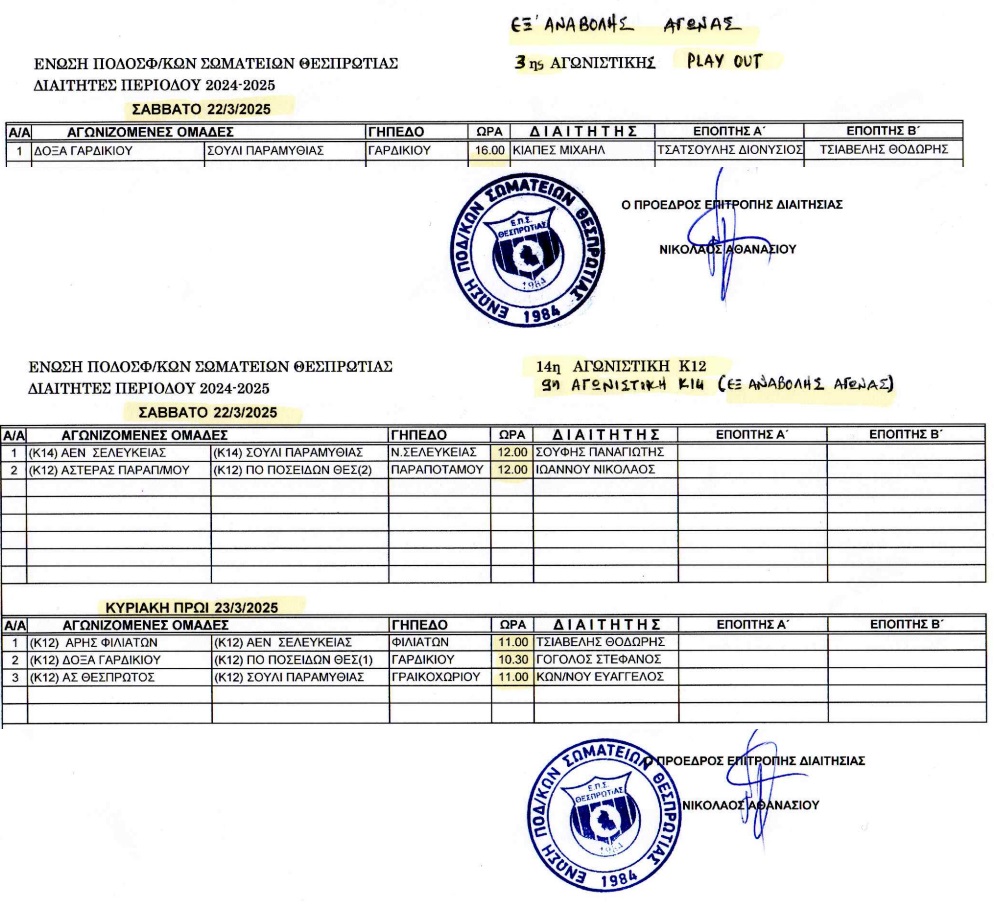 ΕΠΣ | Το πρόγραμμα και οι διαιτητές του Σαββατοκύριακου στα γήπεδα της Θεσπρωτίας Για τα play out και τις υποδομές 21|03|2025
