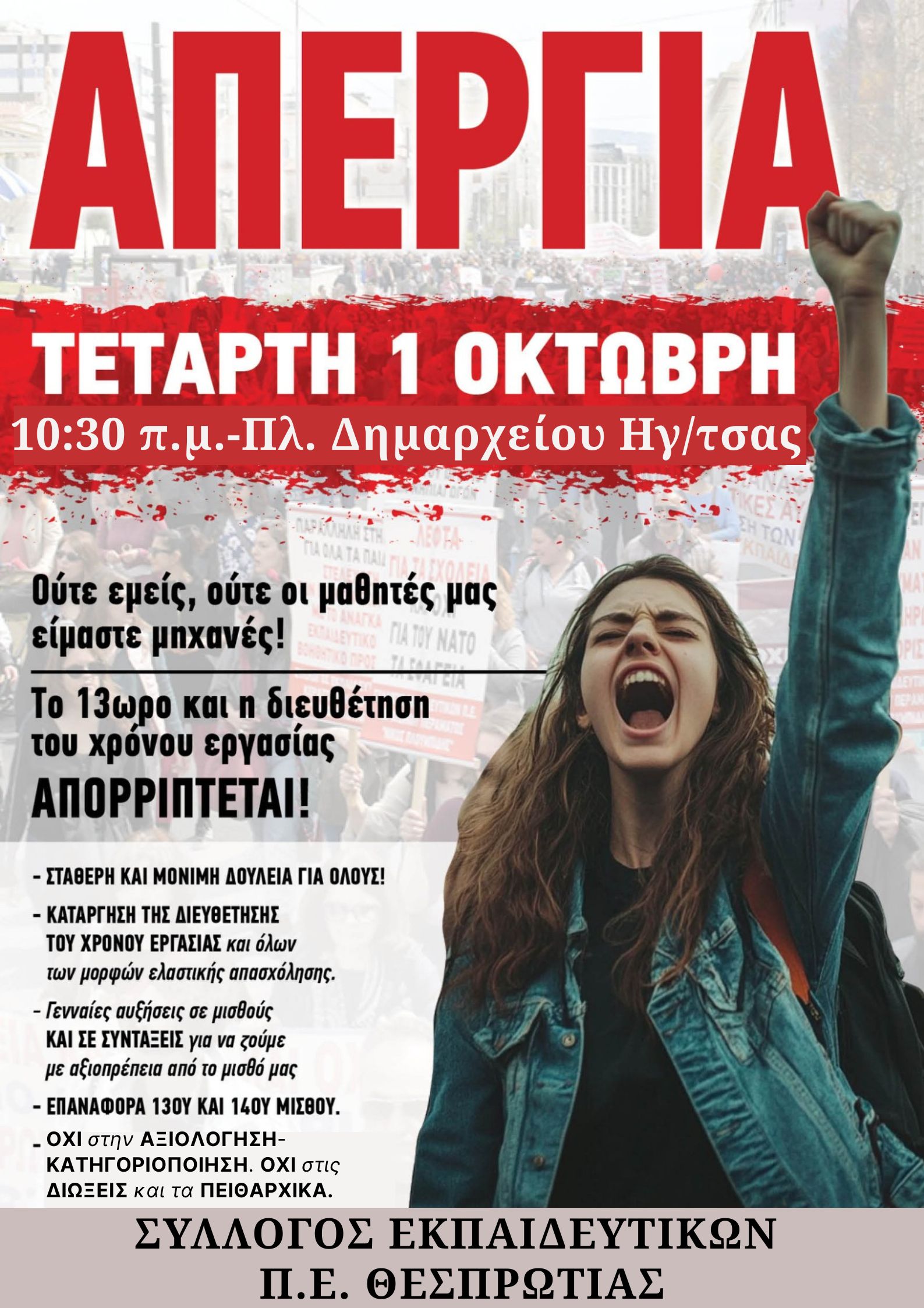 Ο Σύλλογος Εκπαιδευτικών ΠΕ Θεσπρωτίας για την απεργία για το 13ωρο