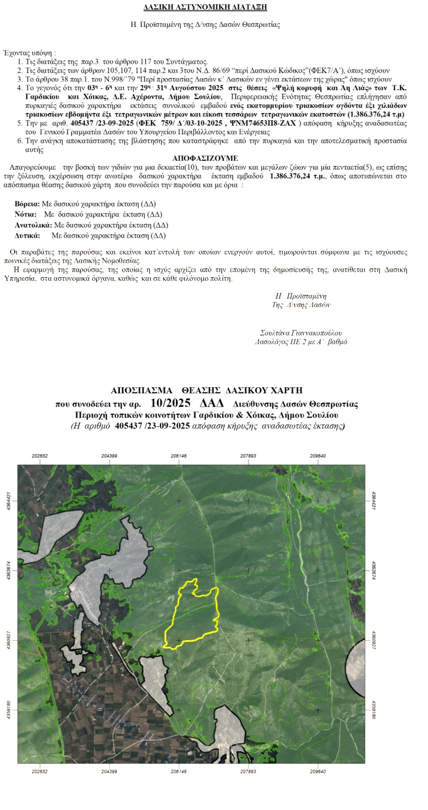 Απαγόρευση βόσκησης σε αναδασωτέα περιοχή των κοινοτήτων Γαρδικίου και Χόικας Δασική Αστυνομική Διάταξη 10|10|2025