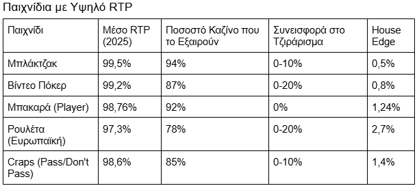 - Κουλοχέρηδες με υψηλό RTP (96%+)