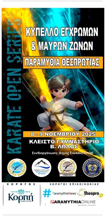 Η Παραμυθιά φιλοξενεί το Open Series Καράτε Δυτικής Ελλάδας 2025, μια σπουδαία διοργάνωση Καράτε που συγκεντρώνει αθλητές και προπονητές από όλη την Ελλάδα.