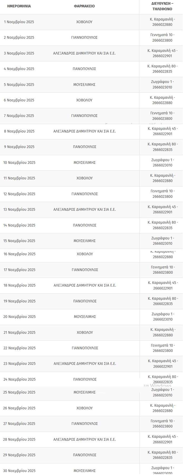 Το πρόγραμμα για τα εφημερεύοντα – διανυκτερεύοντα φαρμακεία της Παραμυθιάς για τον Νοέμβριο του 2025.