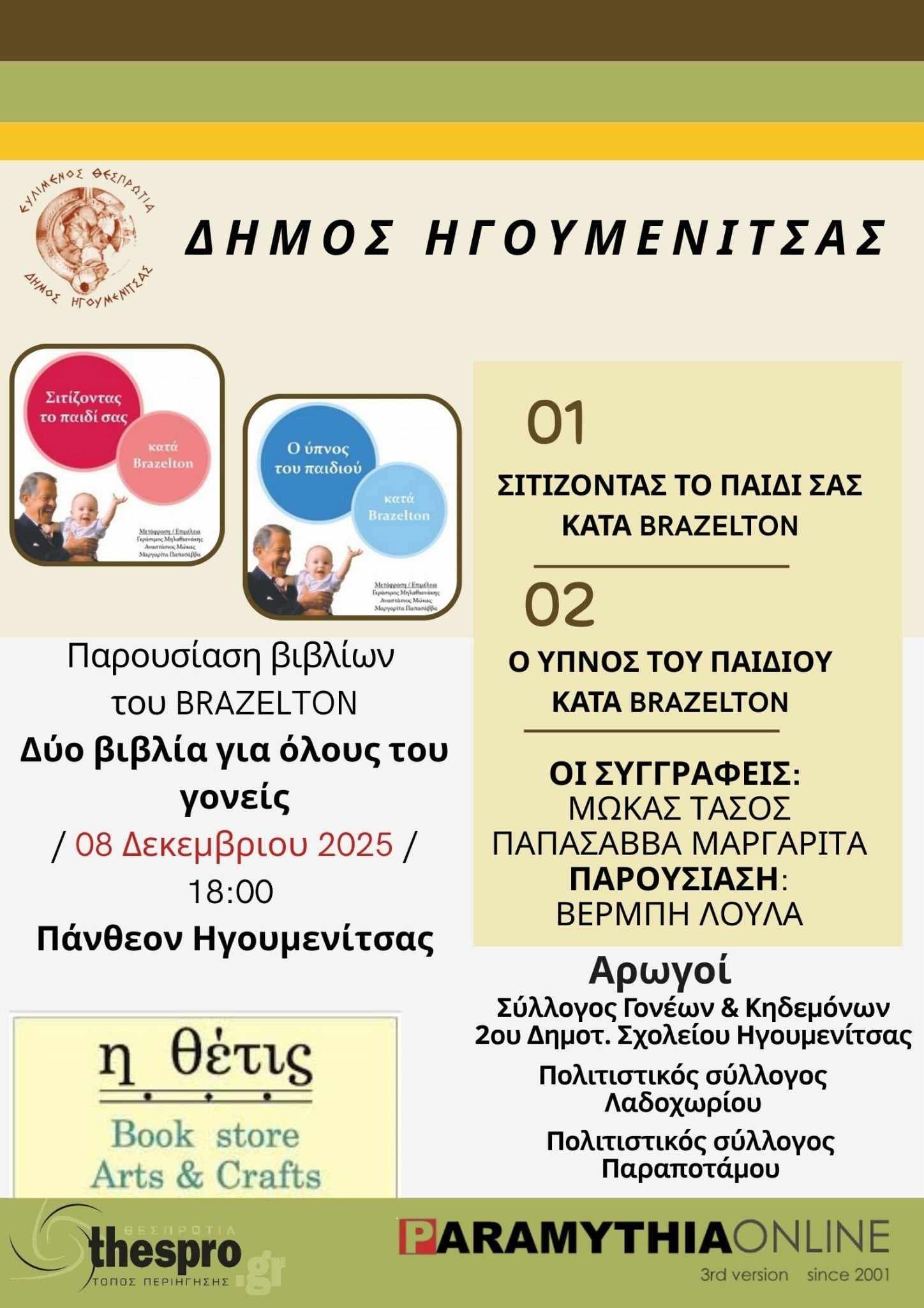 Ο Τάσος Μώκας και η Μαργαρίτα Παπασάββα παρουσιάζουν στις 08 Δεκεμβρίου 2025, στην Ηγουμενίτσα τα βιβλία για την νευροανάπτυξη των παιδιών.