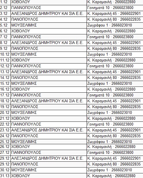Ωράριο λειτουργίας: 08:00 το πρωί έως 08:00 το πρωί της επόμενης ημέρας. Μετά τις 23:00 το κοινό θα εξυπηρετείται μόνο με ιατρική συνταγή.