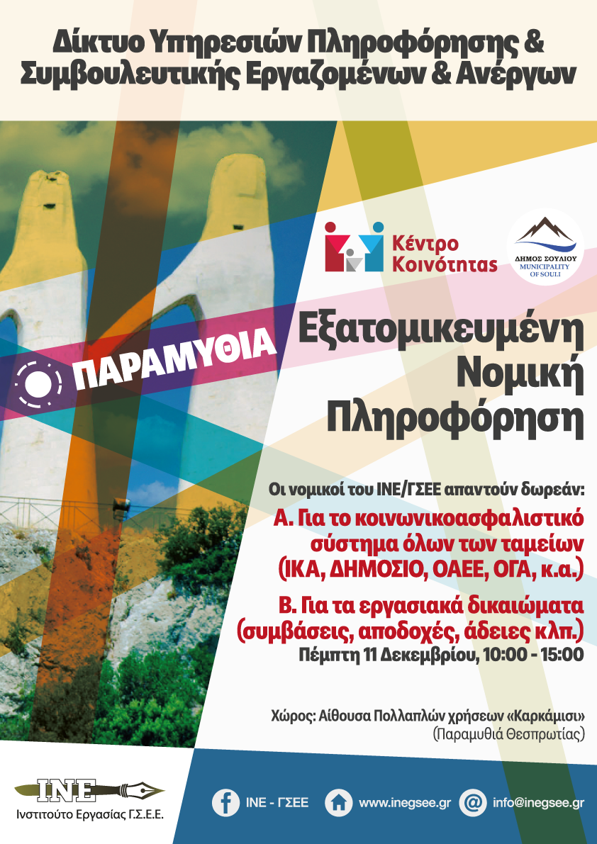 Το Ινστιτούτο Εργασίας της Γ.Σ.Ε.Ε (ΙΝ.Ε-Γ.Σ.Ε.Ε) σε συνεργασία με το Κέντρο Κοινότητας & το Δήμο Σουλίου,