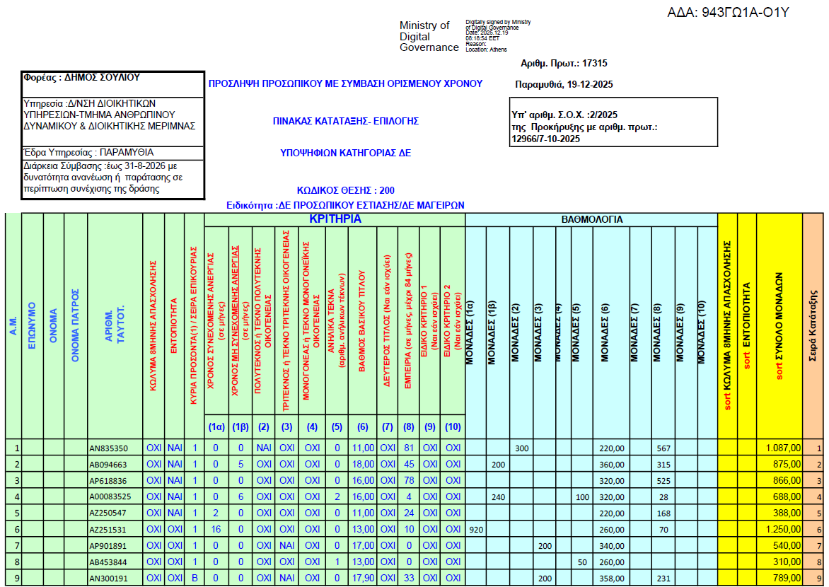 Ο Δήμος Σουλίου, δημοσίευσε την αναμόρφωση των αποτελeσματων της ΣΟΧ 2/2025 για την πρόσληψη προσωπικού με σύναψη Σύμβασης Εργασίας Ορισμένου Χρόνου, οπως αυτή διαμορφώθηκε μετά και τις ενστάσεις.