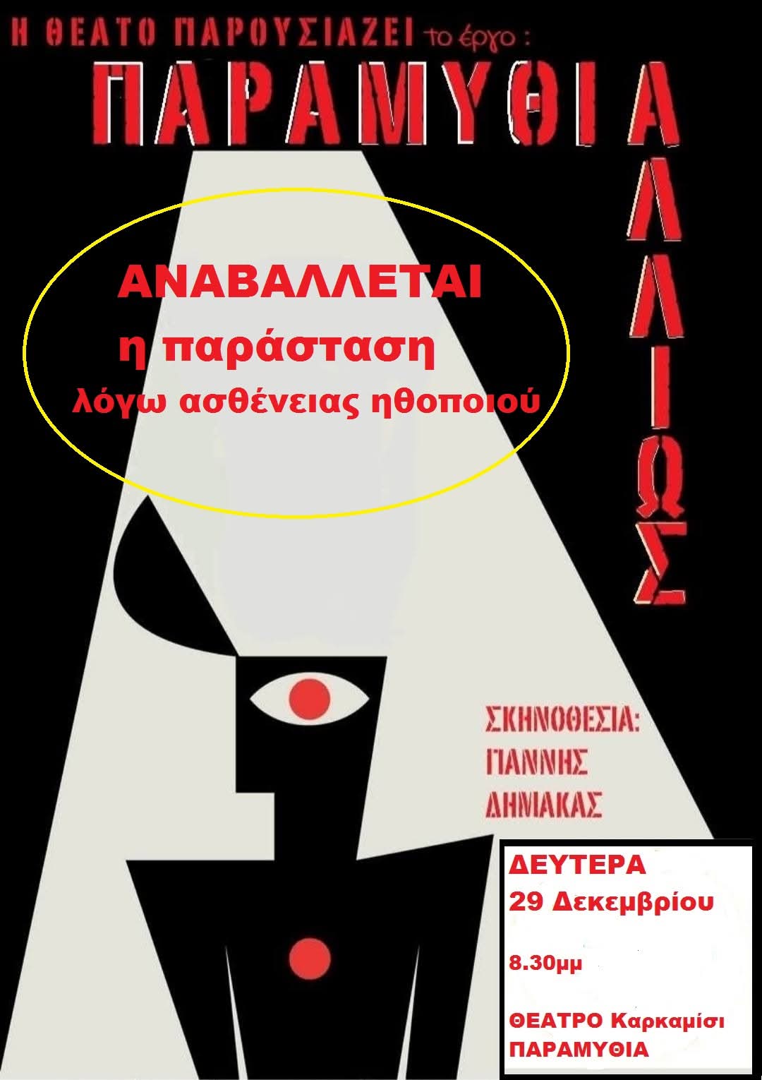 Αναβάλλεται η προγραμματισμένη για αυριο παράσταση της ΘΕΑΤΟ με το «Παραμύθι Αλλιώς» Λόγω ασθένειας ηθοποιού 28|12|2025