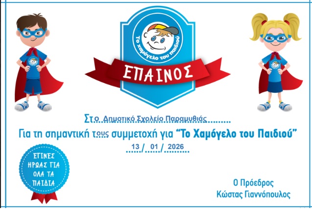 Σε μια συγκινητική κίνηση αλληλεγγύης προχώρησαν οι μαθητές του 1ου Δημοτικού Σχολείου Παραμυθιάς “Θεμιστοκλή Ρίγγα”, αποδεικνύοντας έμπρακτα ότι η προσφορά δεν έχει ηλικία. Μέσα από μια σημαντική πρωτοβουλία, τα παιδιά του σχολείου κατάφεραν να στηρίξουν ουσιαστικά το έργο του οργανισμού «Το Χαμόγελο του Παιδιού», βοηθώντας άλλα παιδιά που έχουν ανάγκη.