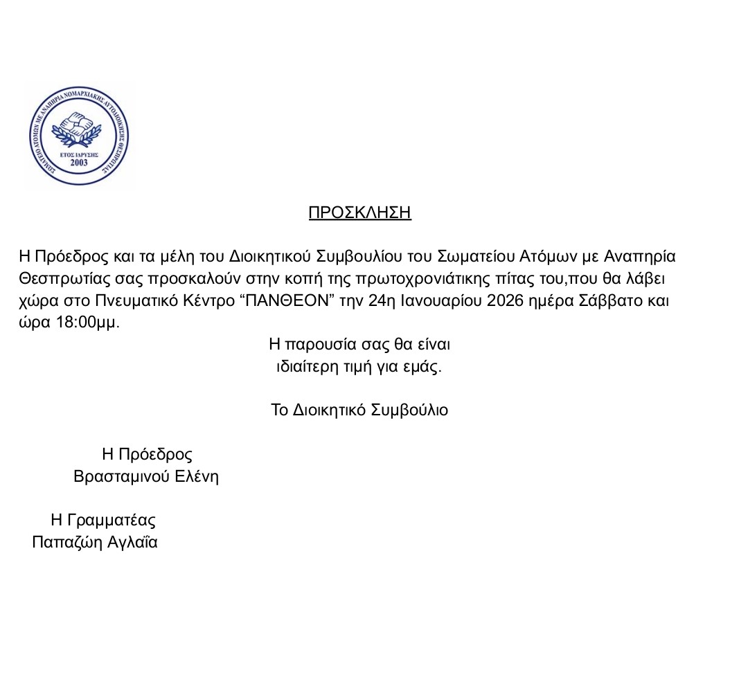Ο Σύλλογος ΑμεΑ Θεσπρωτίας κόβει την πίτα του