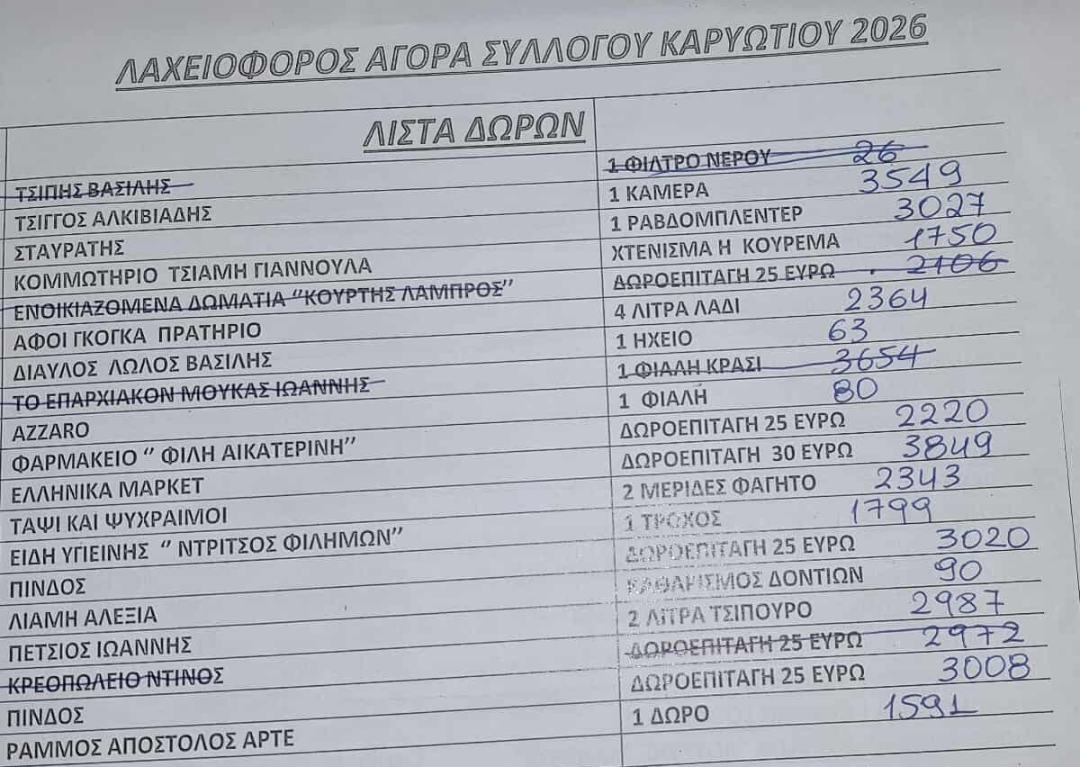 Τα αποτελέσματα της Λαχειοφόρου Αγοράς του Πολιτιστικού Συλλόγου Καρυωτίου