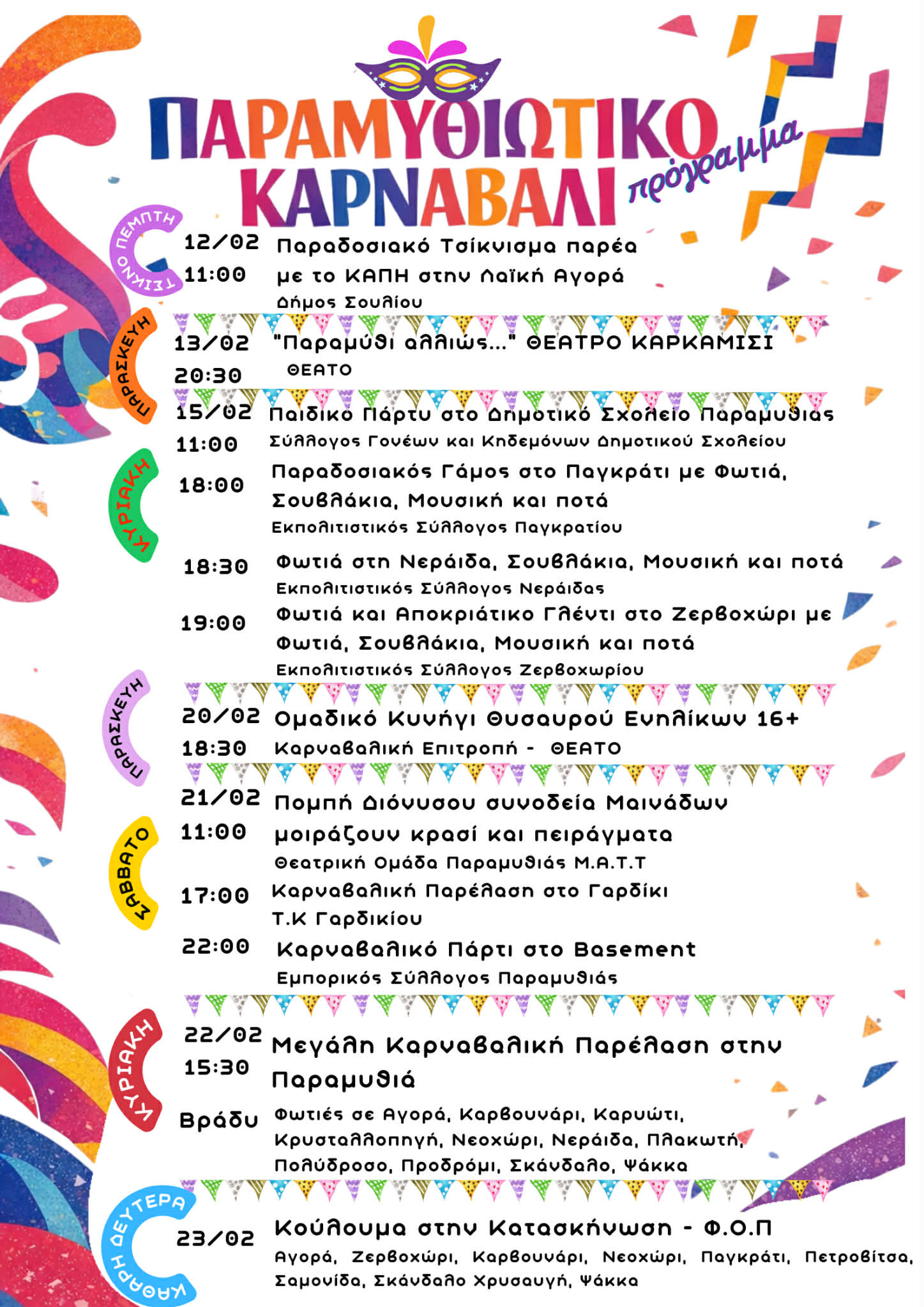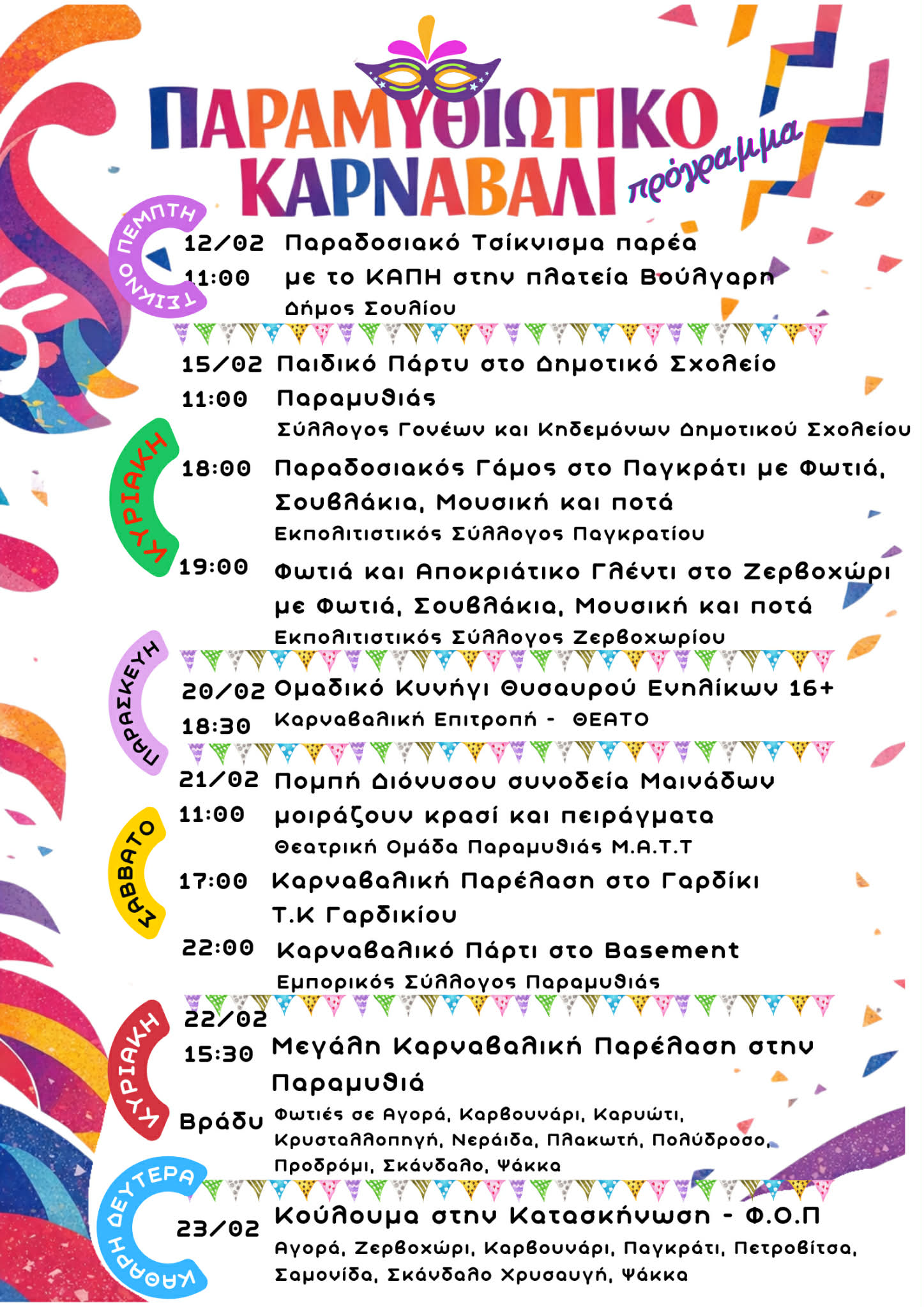Καρναβάλι Παραμυθιάς | Το πρόγραμμα εκδηλώσεων