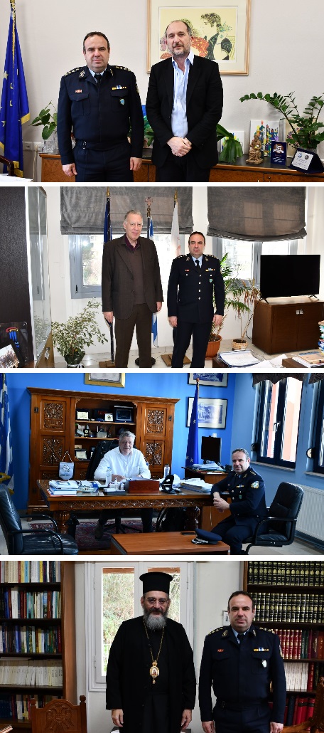Οι συναντήσεις διεξήχθησαν σε κλίμα αμοιβαίας εκτίμησης, με κύριο αντικείμενο, την ανταλλαγή ευχών για μια γόνιμη θητεία, την επιβεβαίωση της στενής συνεργασίας μεταξύ της Ελληνικής Αστυνομίας και των τοπικών φορέων και την ενίσχυση του πλαισίου ασφάλειας και κοινωνικής συνοχής στην περιοχή.