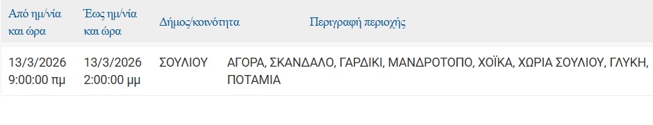Προκειμένου να προγραμματίσετε τις εργασίες σας και να ελαχιστοποιηθεί η όχλησή σας, στον ακόλουθο πίνακα, μπορείτε να ενημερωθείτε για τις περιοχές και τις ώρες προγραμματισμένων διακοπών ηλεκτροδότησης.