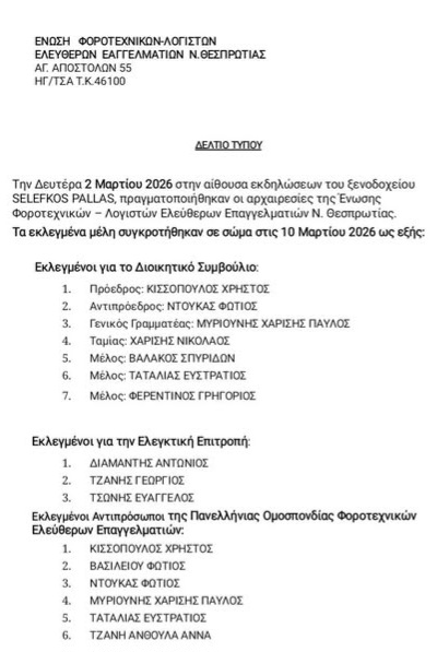 Ένωση Λογιστών Φοροτεχνικών Θεσπρωτίας