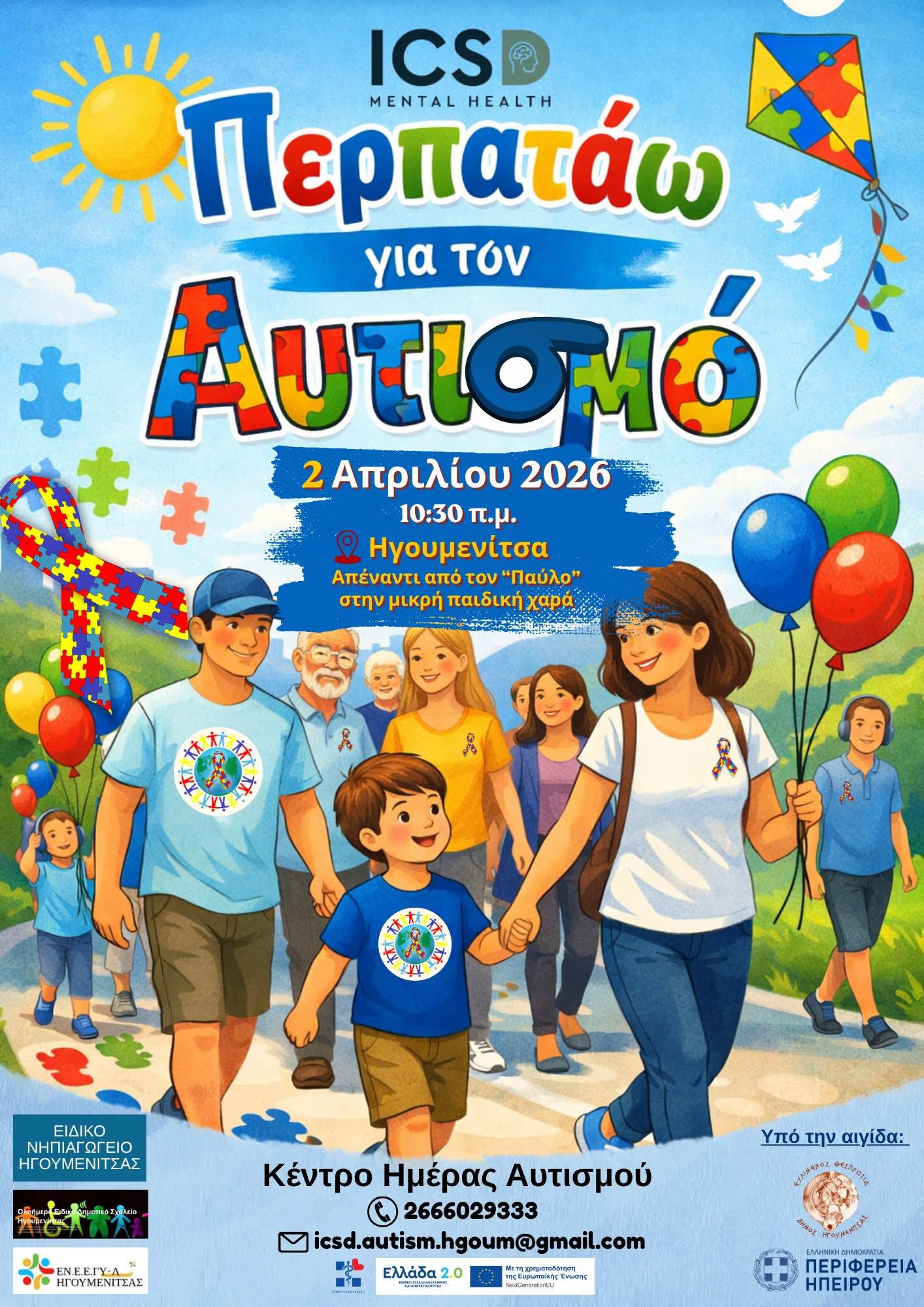 Σας προσκαλούμε σε έναν συμβολικό περίπατο ευαισθητοποίησης, σε συνεργασία με τα Ειδικά Σχολεία Ηγουμενίτσας και υπό την αιγίδα του Δήμου Ηγουμενίτσας και της Περιφέρειας Ηπείρου.