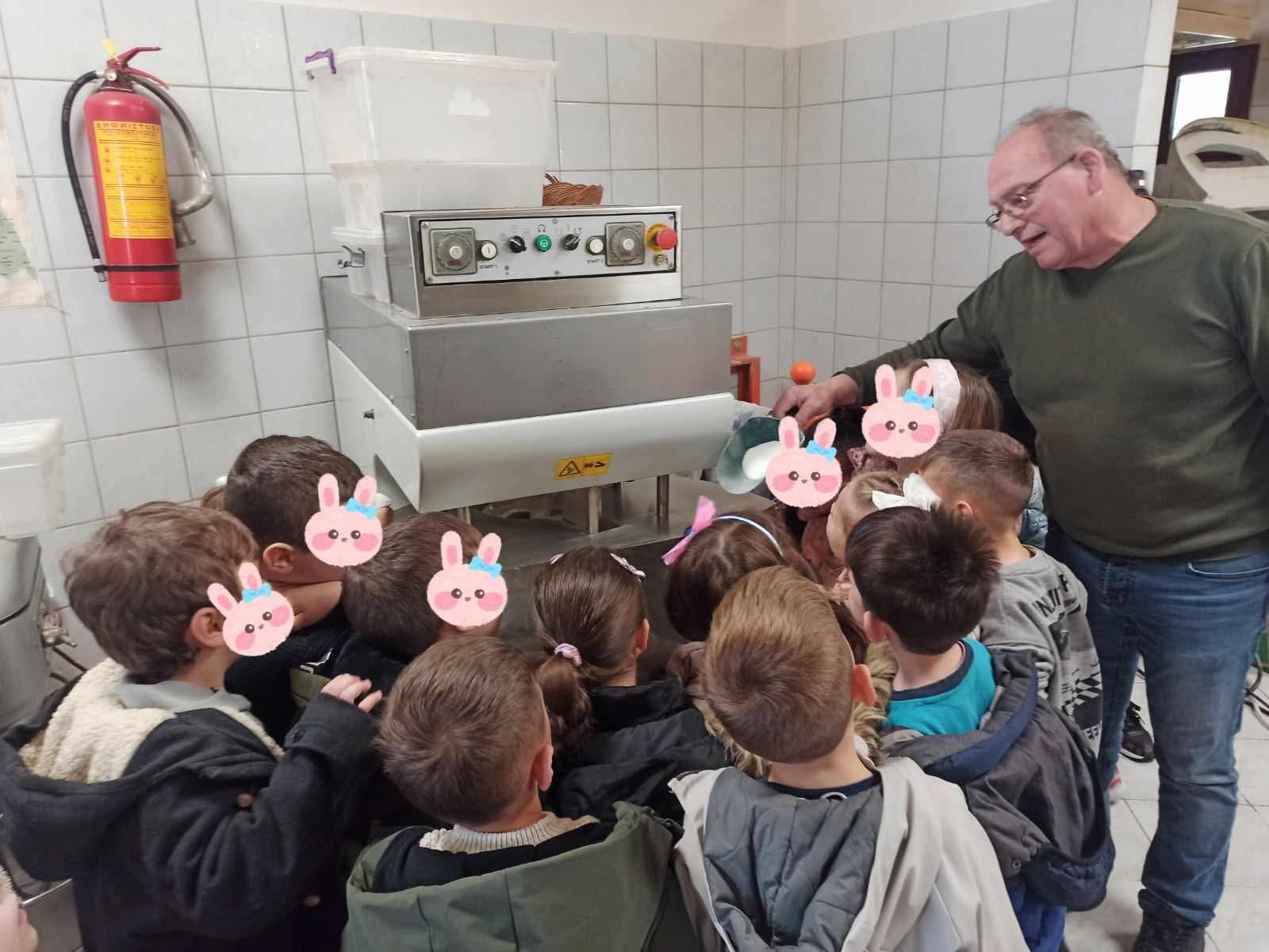 Ο κ. Γιώργος ξενάγησε τους μικρούς μας μαθητές στο χώρο του φούρνου και τους εδωσε την ευκαιρία να πειραματιστούν με τα υλικά και να φτιάξουν τα “Λαζαρακια”, τιμώντας τις παραδόσεις του τοπου μας, ενόψει των εορτών του Πάσχα.