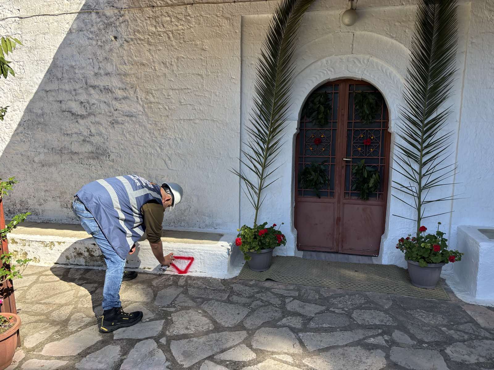 Η αυτοψία έγινε απο μηχανικούς του Υπουργείου Κλιματικής κρίσης και πολιτικής προστασίας την Μεγάλη Τρίτη 7 Απριλίου.