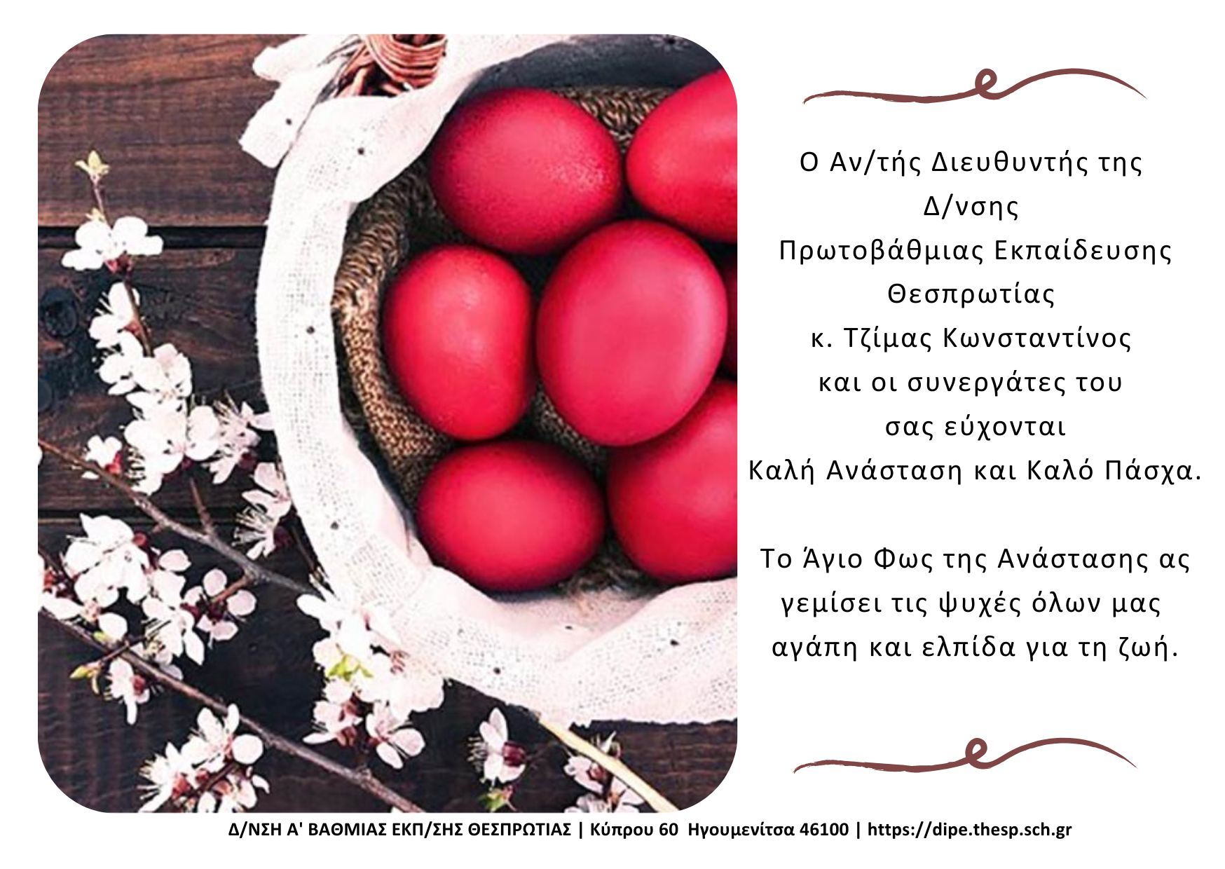 Ευχές απο την Διεύθυνση Πρωτοβάθμιας Εκπαίδευσης Θεσπρωτίας