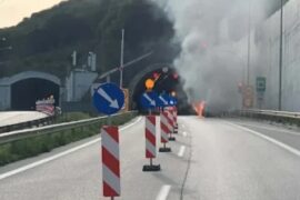 Ουρές χιλιομέτρων απο την φωτιά σε βανάκι στην Εγνατία Οδό, λίγο πριν το τούνελ Βασιλικού.