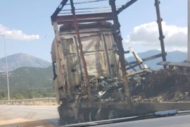 Νταλίκα τυλίχθηκε στις φλόγες στην Εγνατία Οδο, στο ύψος της Γκρίκας Παραμυθιάς.