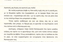 Επιστολή του ιδρύματος ΜΕΛΑ προς 1ο Νηπιαγωγείο Παραμυθιάς