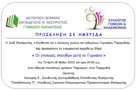 Σήμερα η ημερίδα στο Θέατρο Καρκαμίσι για τις επιλογές μετά το Γυμνάσιο