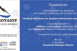 Το πρόγραμμα της ημερίδας για την παρουσίαση του έργου της αναδειξης και βελτιωσης του μονοπατιού Αγ. Αρσένιου
