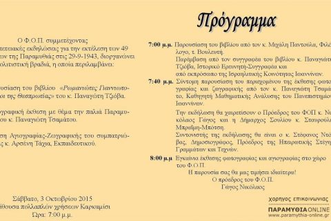 To πρόγραμμα εκδηλώσεων μνήμης για τους 49 Πρόκριτους της Παραμυθιάς