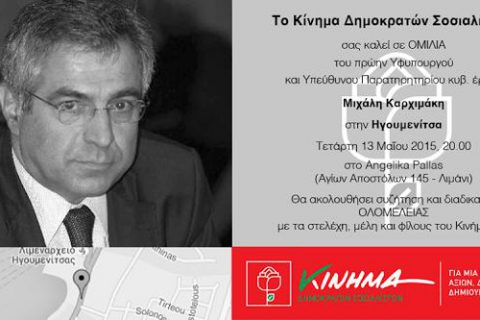Αύριο η συγκέντρωση του ΚΙΔΗΣΟ Θεσπρωτίας με τον Μιχάλη Καρχιμάκη
