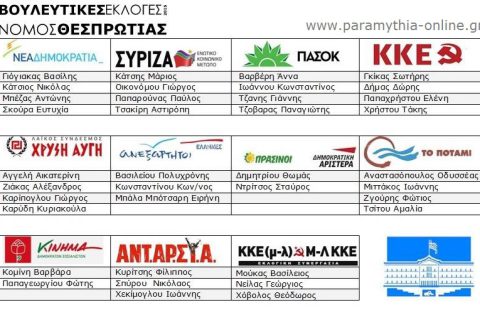 Τα ψηφοδέλτια όλων των κομμάτων στην Θεσπρωτία. Συγκεντρωτικός πίνακας